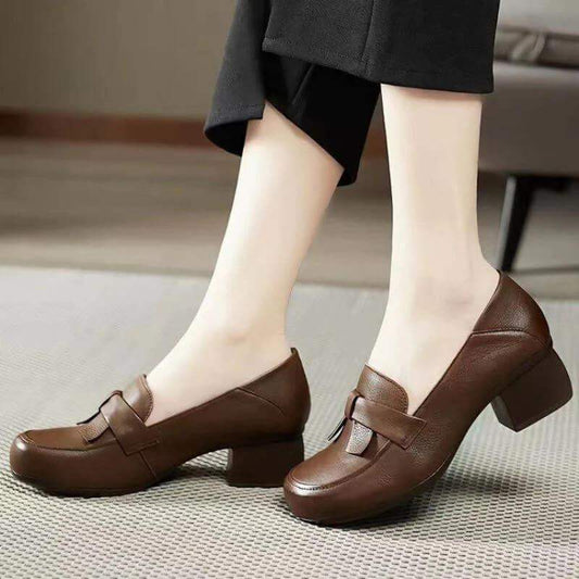 Ahorrar 55%Zapatos de piel suave con tacón medio