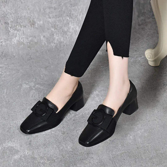 AHORRAR 51%zapatos de cuero de tacón bajo