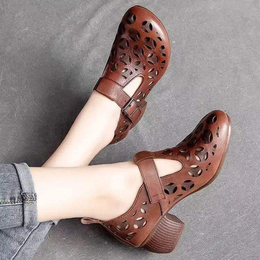 AHORRAR 50%Zapatos de piel con tacón bajo bordados