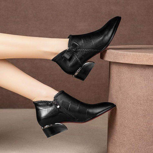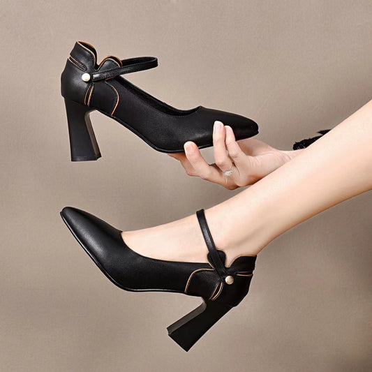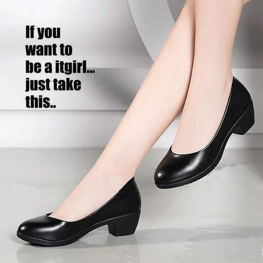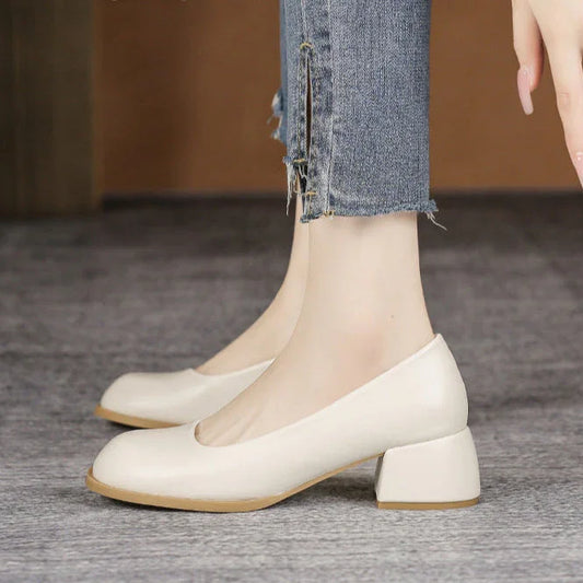 Zapatos de piel con tacón grueso para las cuatro estaciones