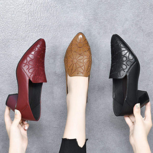 Zapatos de cuero de tacón grueso:No hará que tus pies se sientan cansados